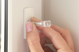 6. Устанавливаем тросовый фиксатор нижний/рама с помощью самореза к окну