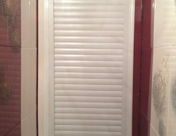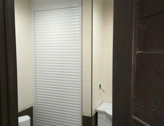 Для того, чтобы сделать качественный дизайн санузла, удачно скрыв трубы, также используют рольставни. Они отличаются прочностью и служат долгое время. Конструкция имеет автоматическое управление с помощью дистанционного пульта или специальной кнопки. Ставни легко и быстро открываются.