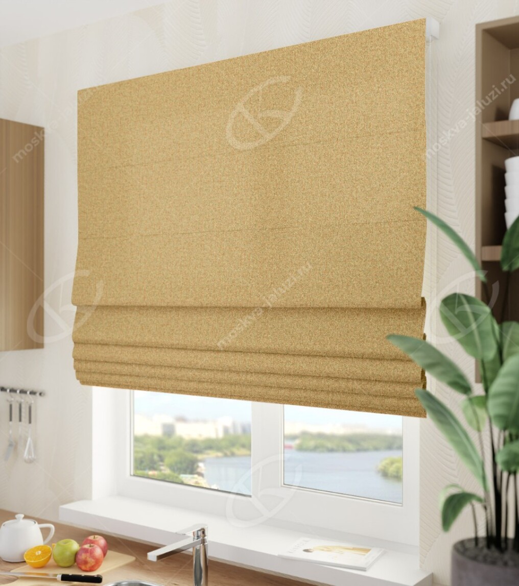 Римские шторы — универсальная конструкция, которую можно вешать на проем или разместить внутри него. Такое изделие можно использовать как декоративное, например, в гостиной или кухне. Римские шторы подойдут для спален и детских комнат, так как просты в использовании, хорошо защищают от солнца и способны вписаться в любой интерьер.