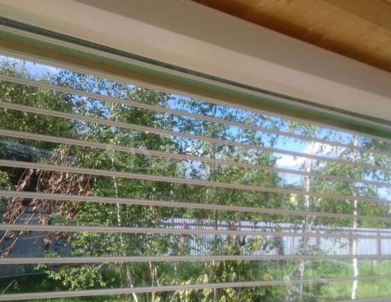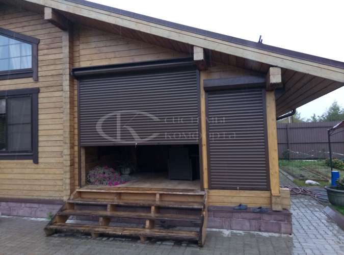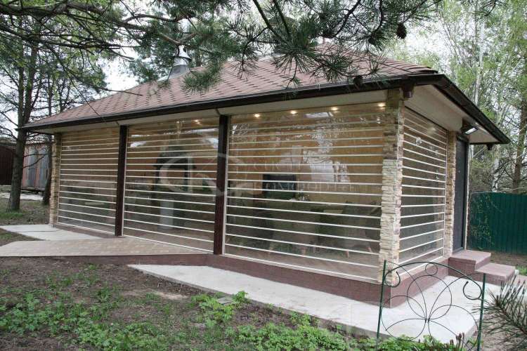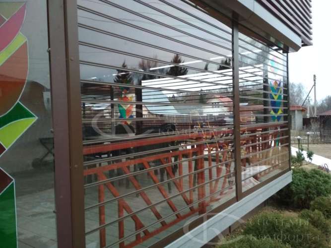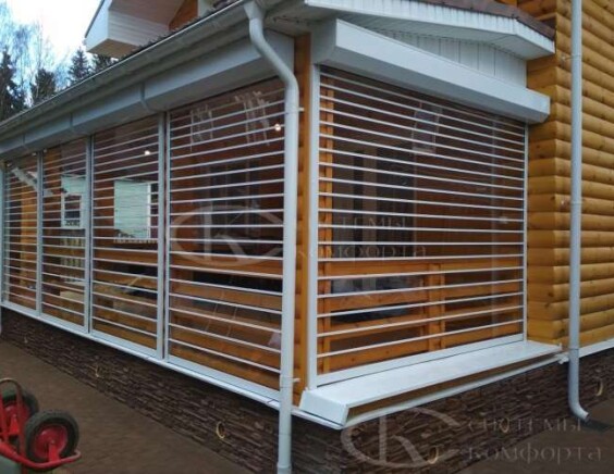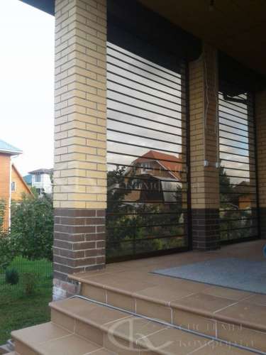 Для террасы часто используют рольставни из прозрачного профиля. Он сохраняет террасу от ветра, снега и дождя. А если выбрать тонированный вариант – то защищает и от яркого солнца. При этом такие изделия не закрывают внешний вид и позволяют чувствовать себя комфортно в любое время года.