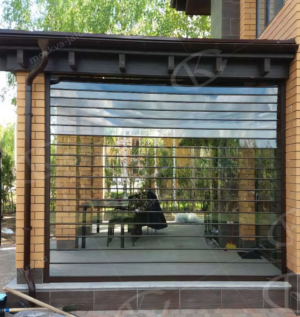 Как и обычные рольставни, такие конструкции состоят из короба, куда убирается плотно, направляющих и ламелей. Последние создаются из алюминиевого профиля и полос прозрачного поликарбоната толщиной 4 миллиметра.