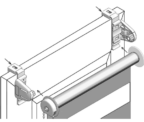 Комплектация Вал с тканью и цепью управления, фиксатор цепи и системы крепления — без сверления (на двусторонний скотч) или на саморезы.
