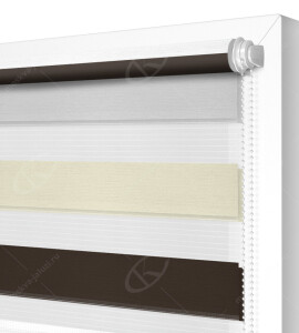 Система состоит из вала, на который наматывается ткань с чередующимися полосками — темными, цветными и прозрачными. Благодаря такой особенности конструкция получила и другие названия: Комбо или Зебра.