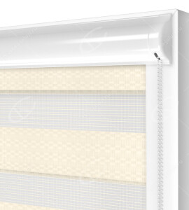 Кассетные рулонные шторы День-Ночь Uni-2 не просто защищают помещение от света и уличных взглядов, но еще и украшают помещение. Конструктивная особенность в том, что изделие состоит из двух слоев ткани. Прозрачные и непрозрачные участки материала чередуются словно рисунок на теле зебры. Благодаря тому, что ткань двигается в «П»-образных направляющих, она не выпадает, если окно находится в режиме проветривания.