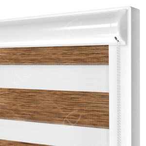 Кассетные рулонные шторы День-Ночь Uni-2 не просто защищают помещение от света и уличных взглядов, но еще и украшают помещение. Конструктивная особенность в том, что изделие состоит из двух слоев ткани. Прозрачные и непрозрачные участки материала чередуются словно рисунок на теле зебры. Благодаря тому, что ткань двигается в «П»-образных направляющих, она не выпадает, если окно находится в режиме проветривания.
