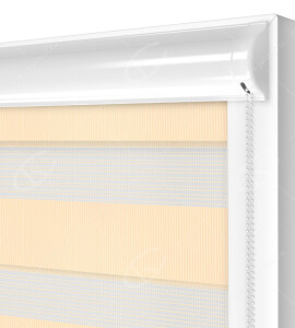 Кассетные рулонные шторы День-Ночь Uni-2 не просто защищают помещение от света и уличных взглядов, но еще и украшают помещение. Конструктивная особенность в том, что изделие состоит из двух слоев ткани. Прозрачные и непрозрачные участки материала чередуются словно рисунок на теле зебры. Благодаря тому, что ткань двигается в «П»-образных направляющих, она не выпадает, если окно находится в режиме проветривания.