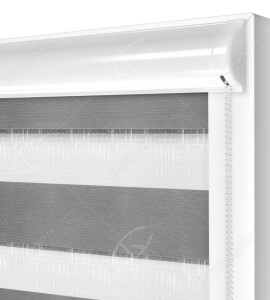 Кассетные рулонные шторы День-Ночь Uni-2 не просто защищают помещение от света и уличных взглядов, но еще и украшают помещение. Конструктивная особенность в том, что изделие состоит из двух слоев ткани. Прозрачные и непрозрачные участки материала чередуются словно рисунок на теле зебры. Благодаря тому, что ткань двигается в «П»-образных направляющих, она не выпадает, если окно находится в режиме проветривания.