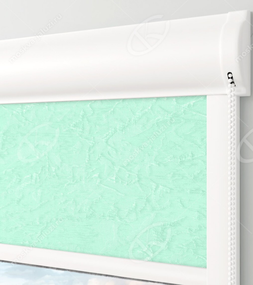 Кассетные рулонные шторы Уни-2 – Шелк салатовый – хороший выбор для управления освещенностью комнаты: это оптимальное соотношение цены и качества. Кассетные рулонные жалюзи легко устанавливаются и управляются: для подъёма и опускания полотна предусмотрена тканевая цепочка. При открытом положении ткань размещается в пластиковом коробе, при закрывании она перемещается по направляющим.