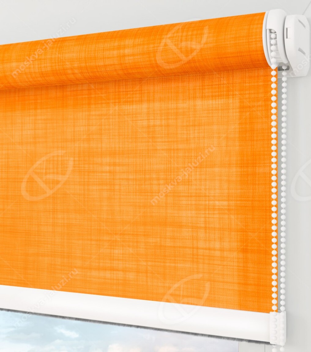 Рулонные шторы Мини – Анже апельсиновый — одна из самых распространенных систем управления освещенностью комнаты. Полотно рулонных штор легко поднимается и опускается, для управления может использоваться цепочка из металла или пластика. Величина вала, на который наматывается полотно, будет зависеть от его длины и ширины, это нужно учитывать при подборе подходящей рулонной шторы.