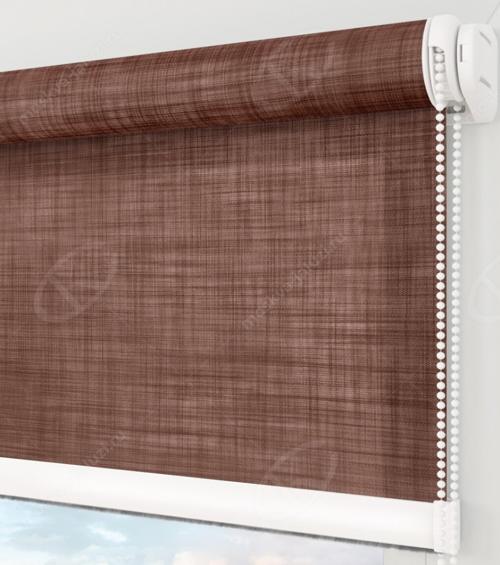 Рулонные шторы Мини – Анже коричневый — одна из самых распространенных систем управления освещенностью комнаты. Полотно рулонных штор легко поднимается и опускается, для управления может использоваться цепочка из металла или пластика. Величина вала, на который наматывается полотно, будет зависеть от его длины и ширины, это нужно учитывать при подборе подходящей рулонной шторы.