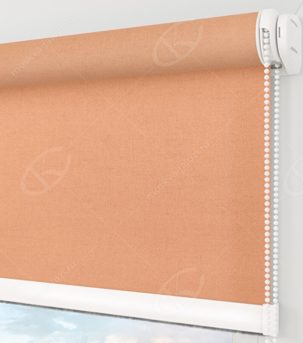 Рулонные шторы Мини – Карина абрикос — одна из самых распространенных систем управления освещенностью комнаты. Полотно рулонных штор легко поднимается и опускается, для управления может использоваться цепочка из металла или пластика. Величина вала, на который наматывается полотно, будет зависеть от его длины и ширины, это нужно учитывать при подборе подходящей рулонной шторы.