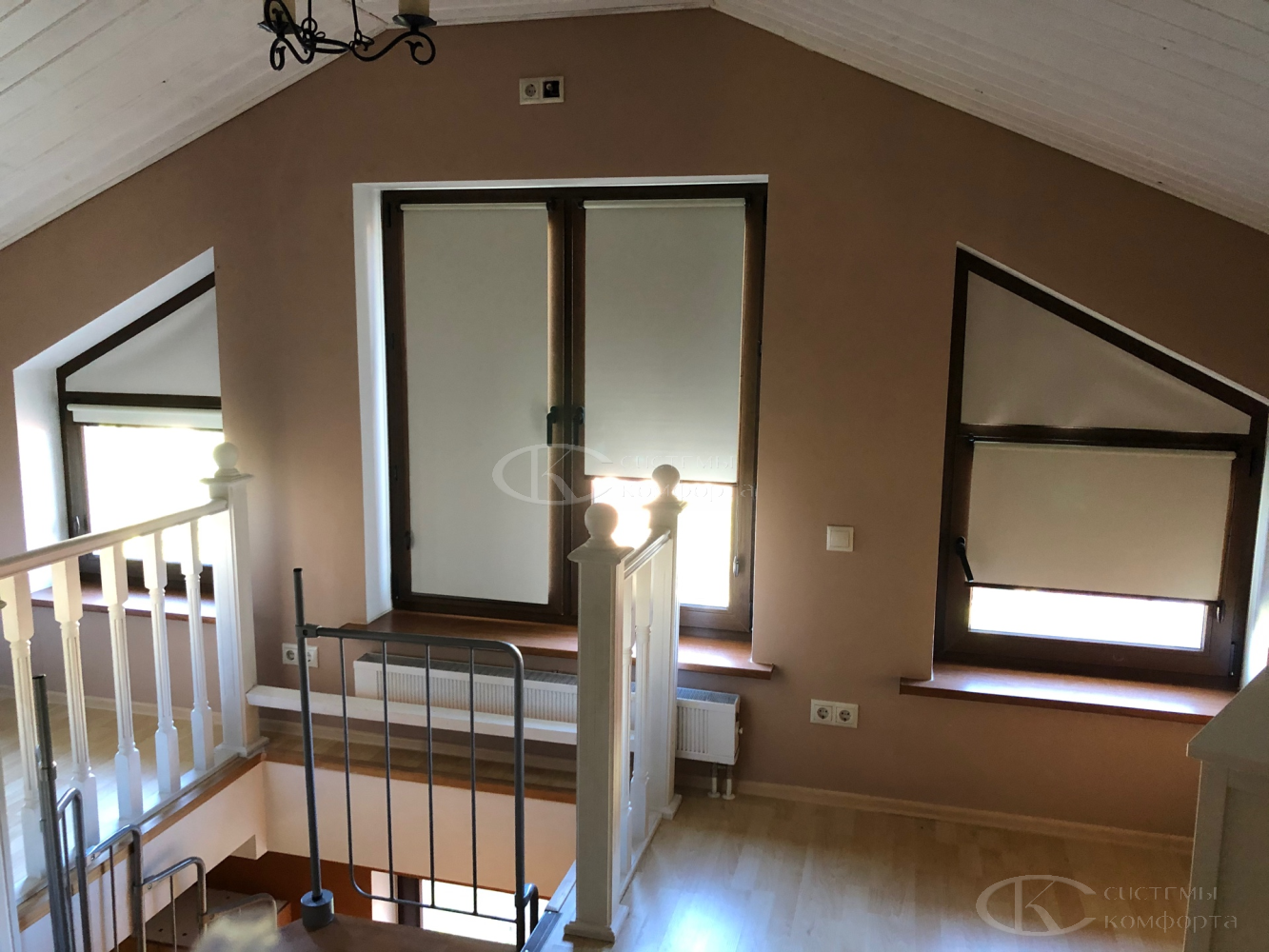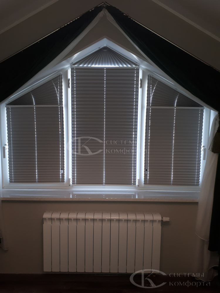 Компания «Системы комфорта» изготавливает жалюзи на треугольные окна и на другие проемы нестандартной формы по индивидуальному заказу. Чаще всего они встречаются в мансарде: окно треугольной формы размещается на фронтоне и помогает обеспечить естественное освещение подкровельного пространства. Однако и в других помещениях могут быть оконные проемы необычной формы, для которых необходимо изготовить персональные системы управления светом.